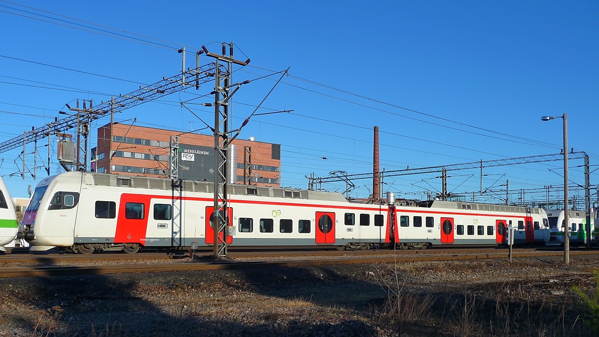 Der einzig rote Triebzug der VR-Baureihe Sm4, #6424, in Riihimäki, 1.5.13