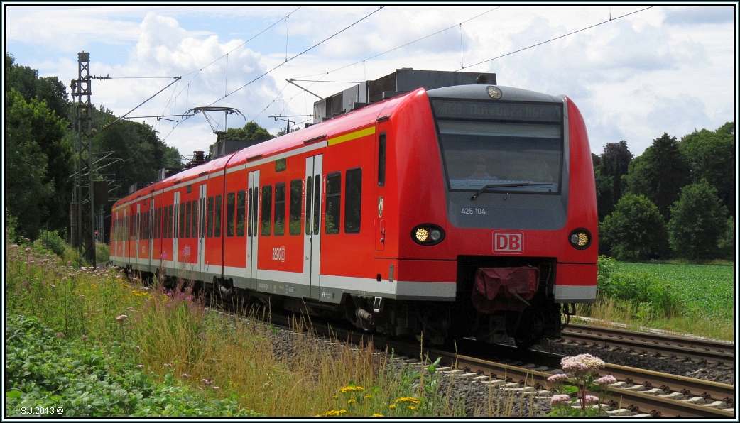 An der L116 Brücke kommt aus der Noithausener Kurve der 425 533-7 mit einem unbekannten Bruder in Richtung Mönchengladbach über die Kbs 465 gefahren am Freitag den 16.8.2013