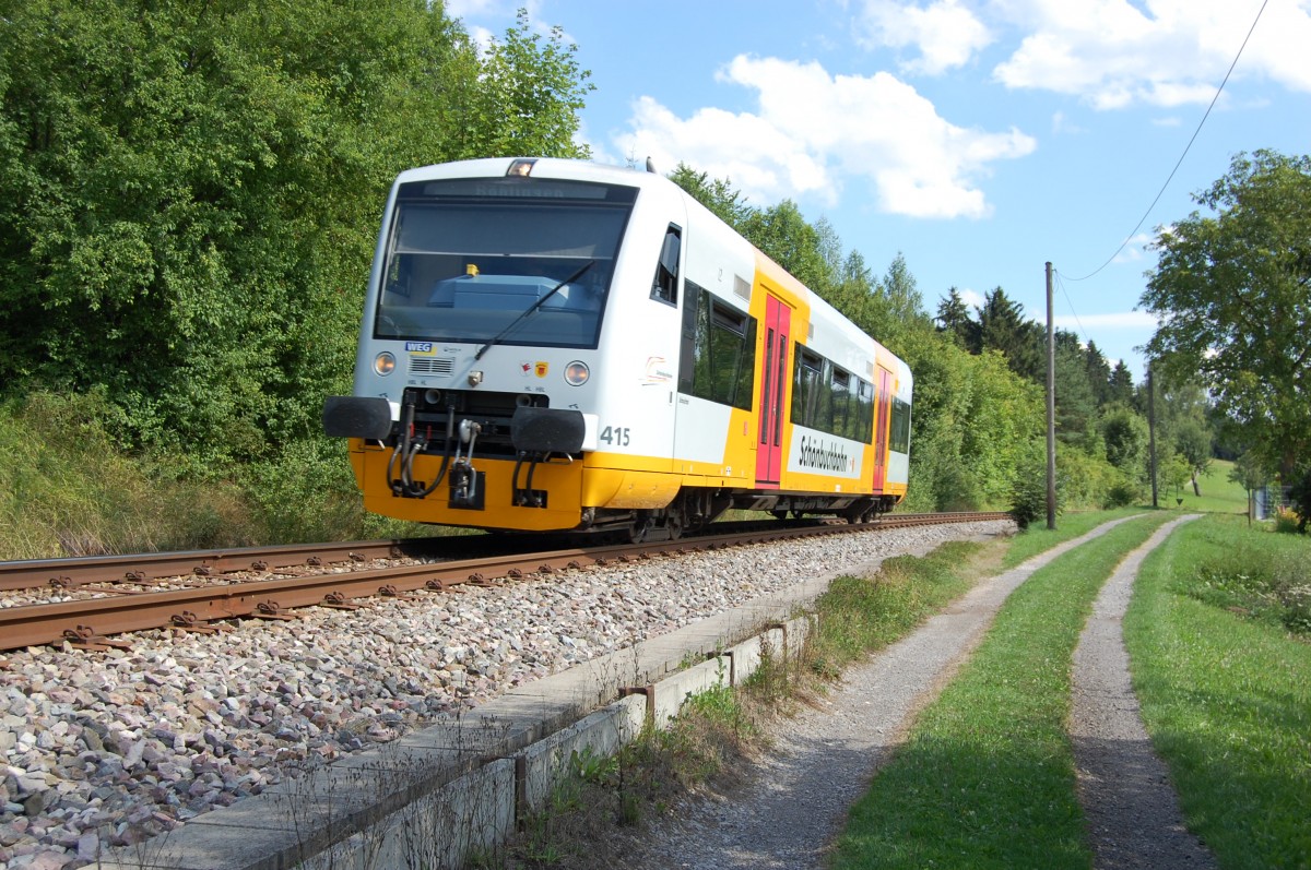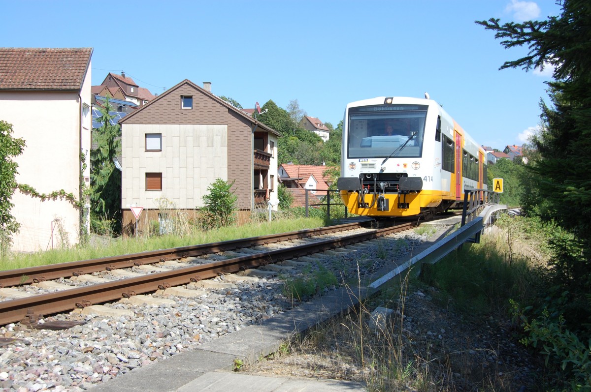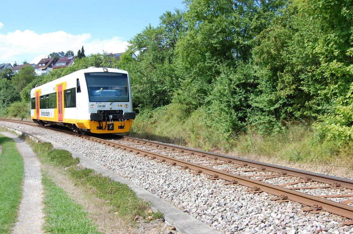 Die Schönbuchbahn am 17. August 2013 kurz vor dem Haltepunkt Weil im Schönbuch Untere Halde.