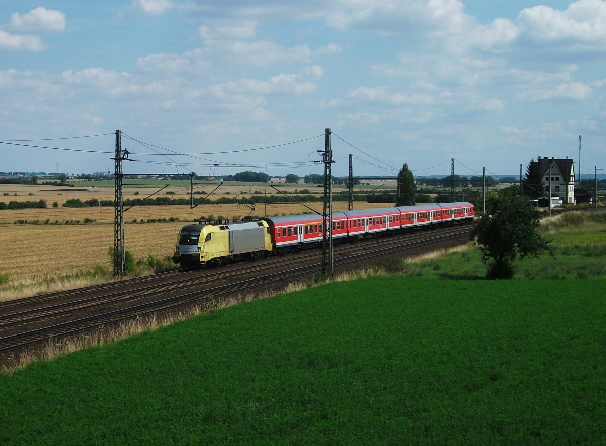 ES 64 U2-018 verlässt am 15.August 2013 mit einer RB nach Eisenach den Bahnhof Seebergen Richtung Gotha.