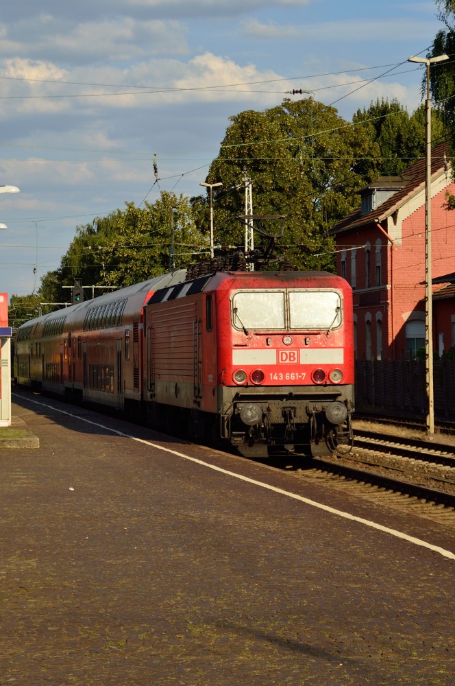 Gerade verlässt die 143 661-7 mit einer RB 27 Rommerskirchen in Richtung Stommeln auf ihrem Weg nach Koblenz. 16.8.2013