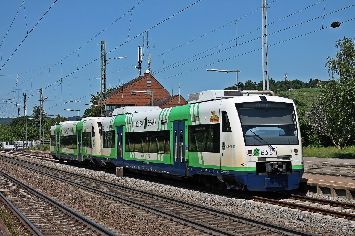 Nachschuss auf BSB 004 (650 031-7) zusammen mit BSB 015 (650 042-4) am 16.06.2013 beim Zwischenhalt in Denzlingen gen Elzach.