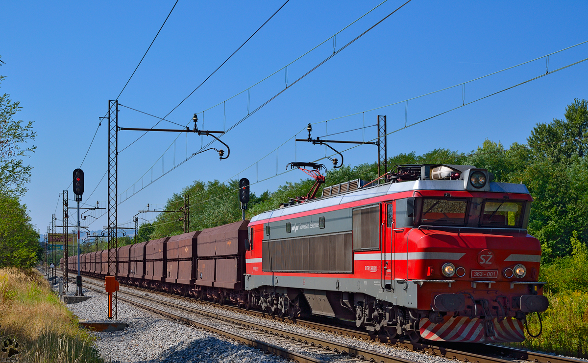 S´ 363-001 zieht Erzzug durch Maribor-Tabor Richtung Norden. /17.8.2013