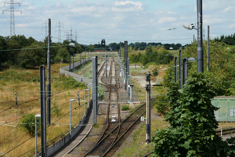 Wagen 1006-2 der Regio Bahn erreicht am 12.7.13 als S28 Richtung "Karster See" "Düsseldorf Hbf".