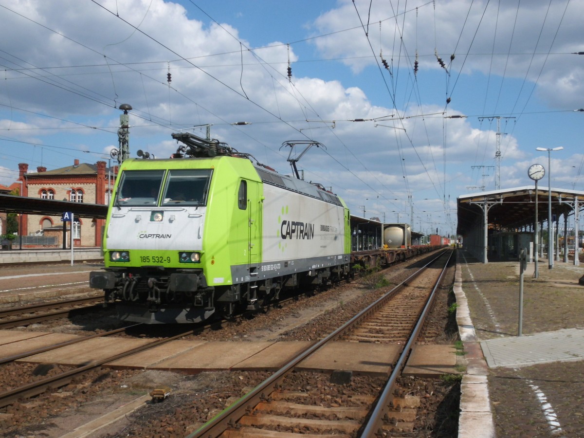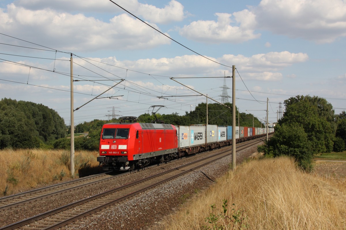 Hier 185 219-3 mit einem Containerzug, bei der Durchfahrt am 7.7.2013 durch Berlin Schönefeld Flughafen, in Richtung Genshagener Heide.