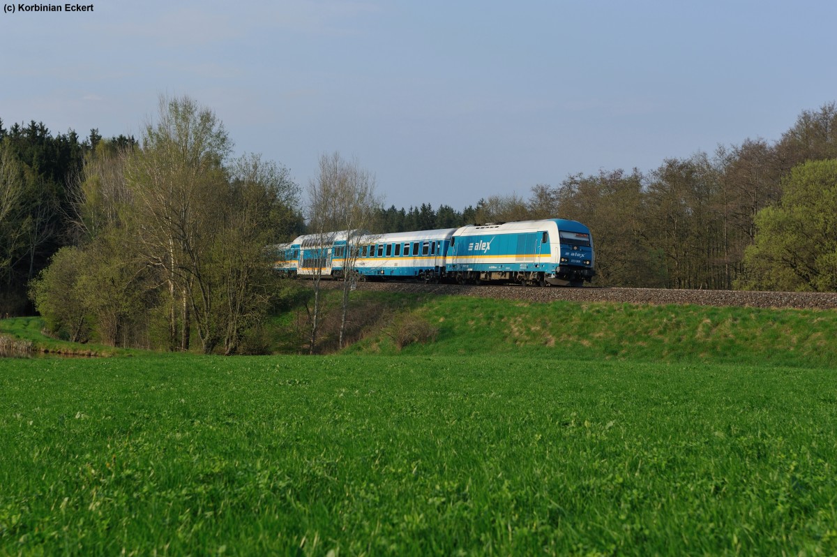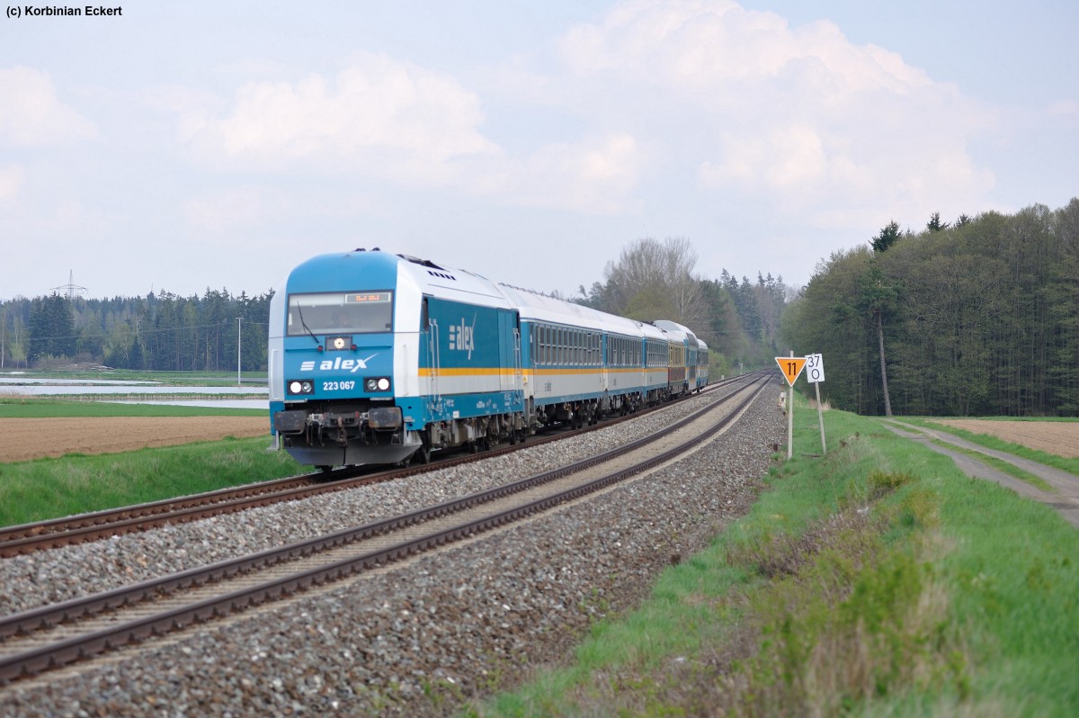 223 067 mit dem ALX 84110 von München Hbf nach Hof Hbf bei Oberteich, 05.05.2013