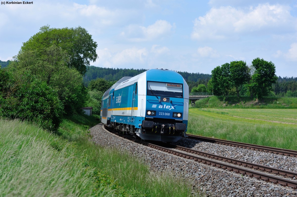 223 068 mit dem ALX 84115 von Hof Hbf nach München Hbf bei Oberteich, 12.06.2013