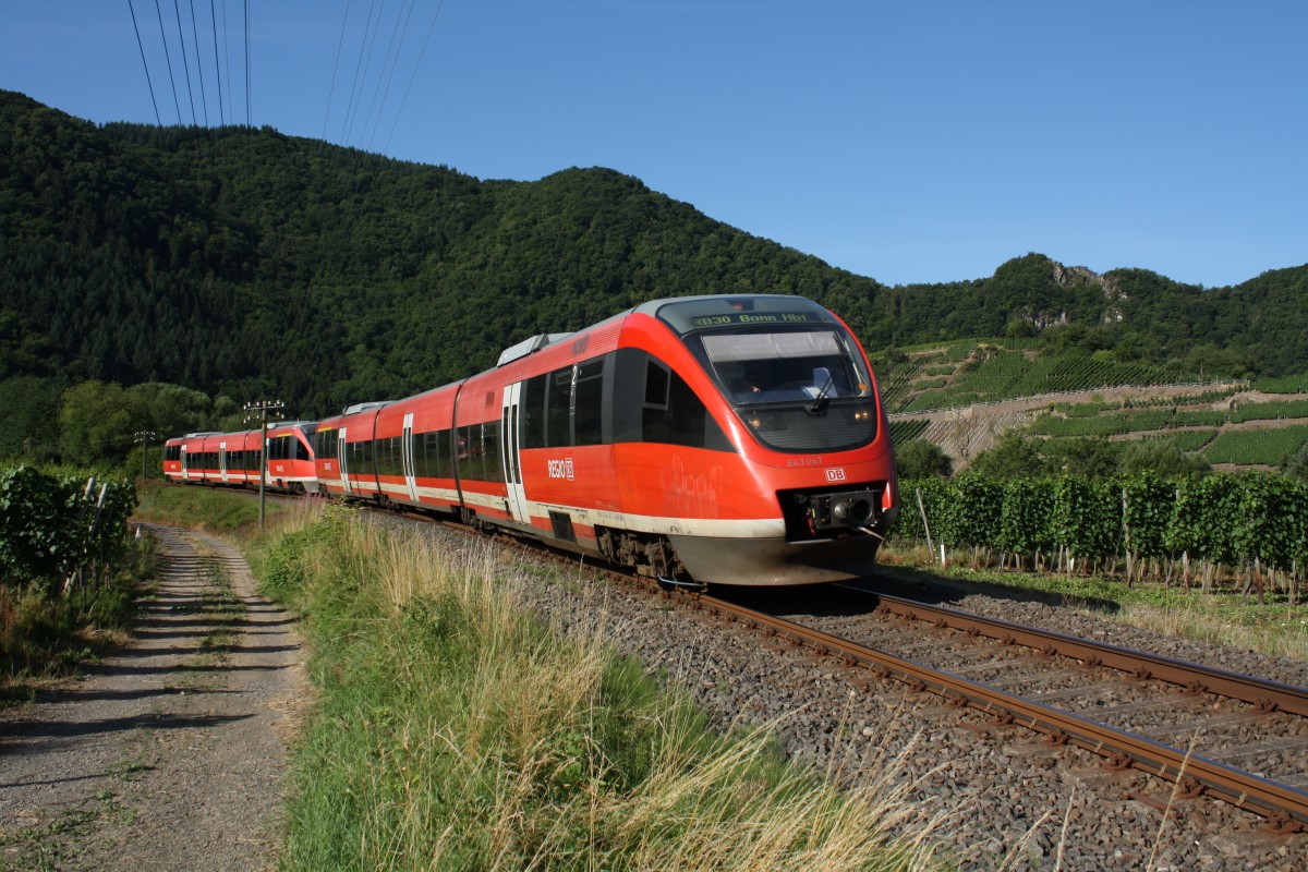 23.08.2013 Boppard Hbf; Ausfahrt hat der 460 501-0 (Siemens Desiro ML) von transregio nach Mainz Hbf
