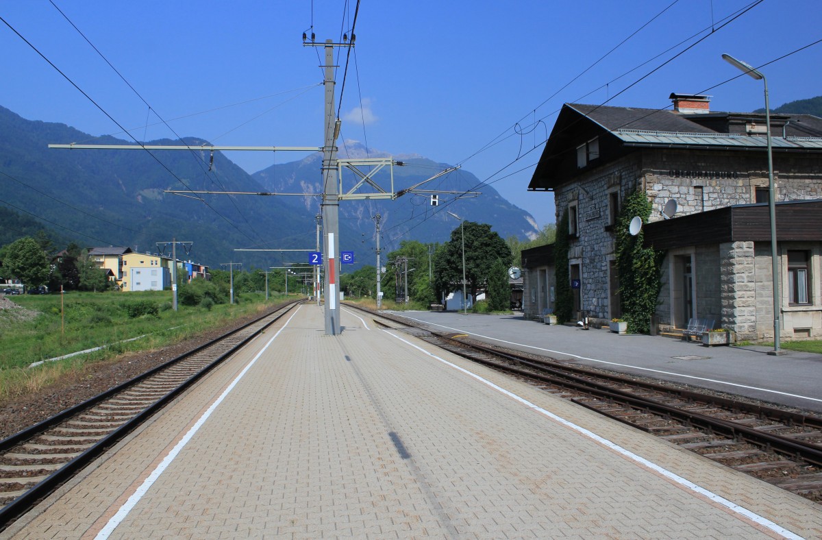 Bahnhof Oberdrauburg bei KM 249,9 (Drautalbahn)mit Blickrichtung Osttirol, Juni 2012