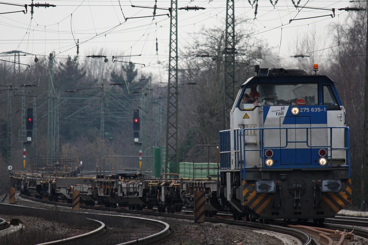 DPR 275 635 am 16.3.13 mit einem leeren Taschenwagenzug in Duisburg-Neudorf.