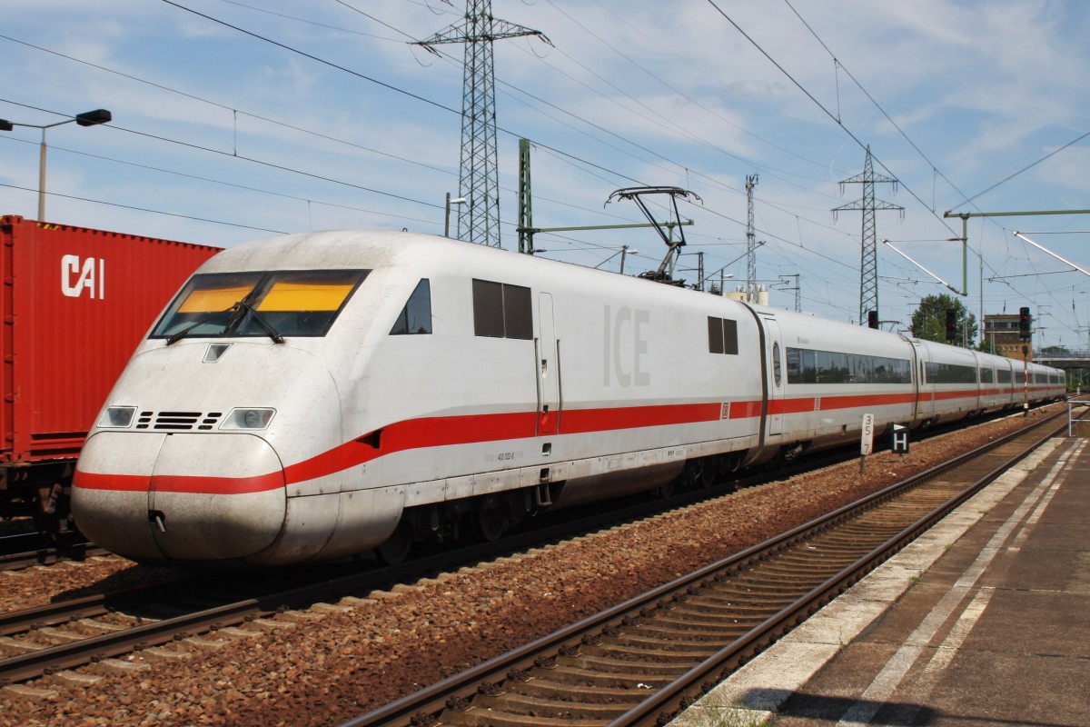 Hier 402 022-8  Eberswalde  als Leerzug von Berlin Hbf.(tief) nach Berlin Rummelsburg, bei der Durchfahrt am 7.7.2013 durch Berlin Schönefeld Flughafen, in Richtung Berlin Grünauer Kreuz.
