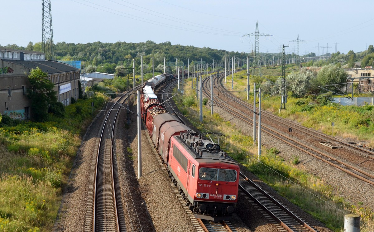 155 252 fuhr mit einem gemischten Güterzug am 25.08.13 durch Bitterfeld.