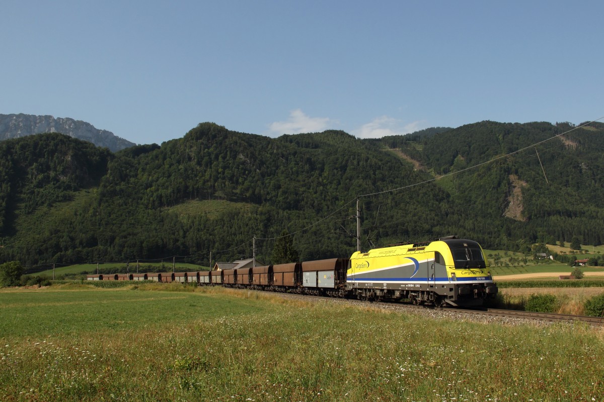 CargoServ 1216 930 zieht einen umgeleiteten Errzug aus Eisenerz über die Pyhrnbahn. Micheldorf, 07.08.13