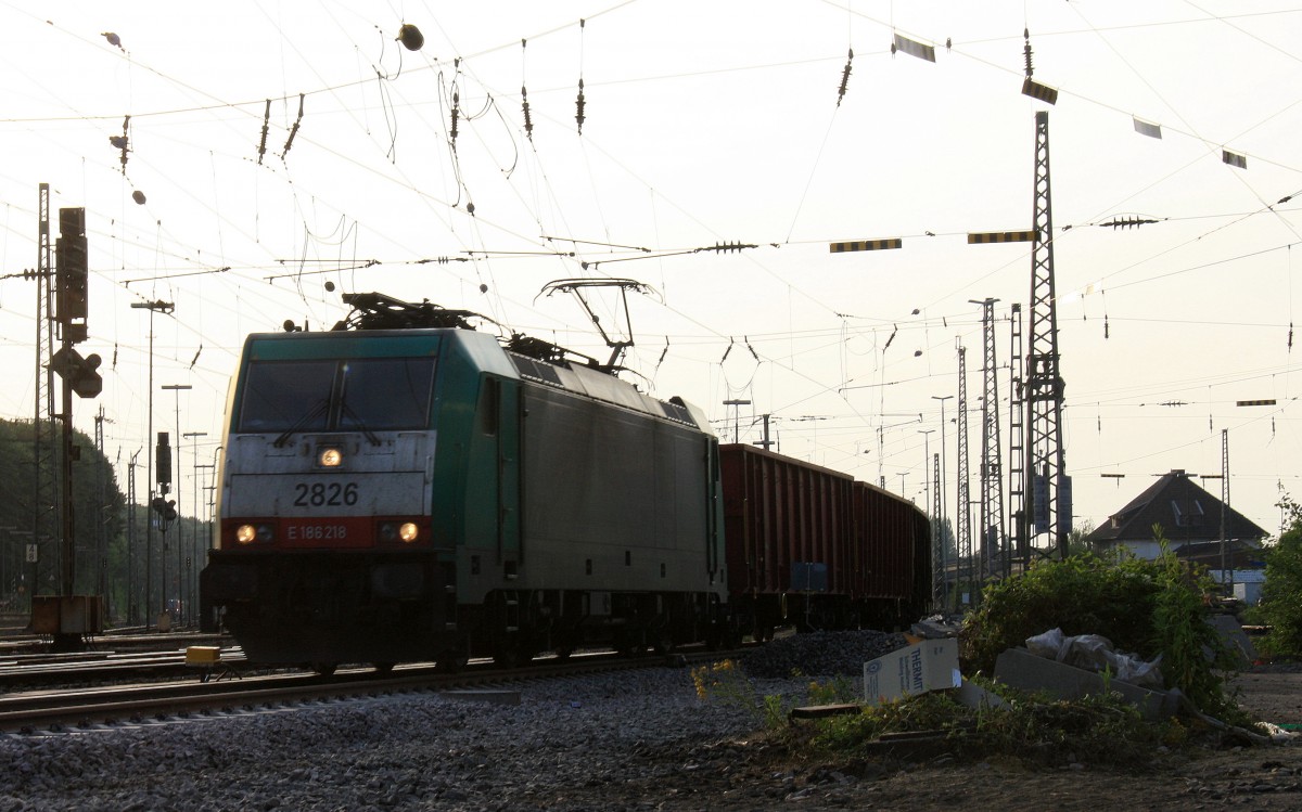 Die Cobra 2826 fährt mit einem Kurzen Schrottzug aus Österreich nach Belgien bei der Ausfahrt von Aachen-West und fährt in Richtung Montzen/Belgien in der Abendstimmung am einem schönem Sommerabend vom 16.7.2013.