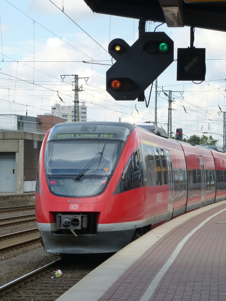 Ein RE4 steht hier am 19.08.2013 im Dortmunder Hauptbahnhof.