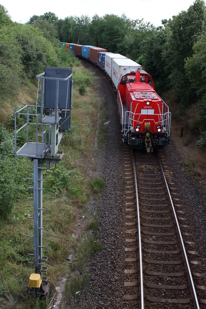 Nach längerer Zeit des Wartens konnte am 14.08.13 ein Containerzug aus Heimboldshausen in Gerstungen auf´s Bild gebracht werden. Zuglok war 265 001-8.