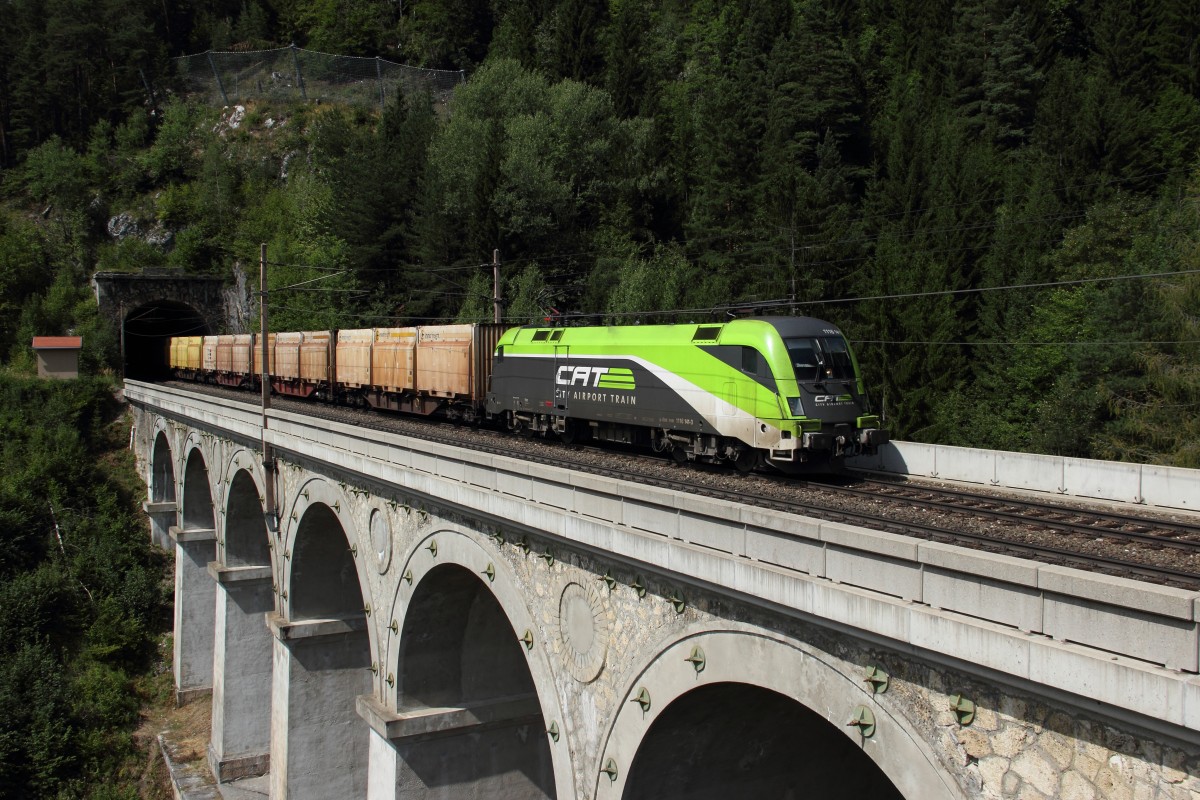 Der neuste ÖBB Werbetaurus, die 1216 019 die zum Jubiläum von Richard Wagner und Giuseppe Verdi beklebt wurde, zieht am 15.08.13 den EC 86 von Venezia Santa Lucia nach München und wurde hier kurz hinter St.Jodok festgehalten.