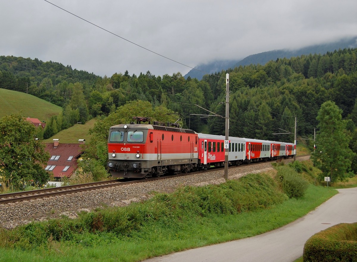 26.08.2013 die 1144 028 durch die Ortschaft Schön gefahren.