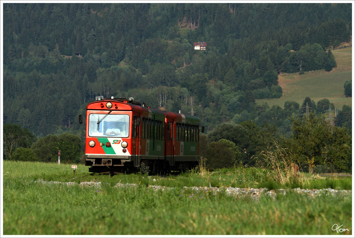 STLB Triebwagen VT 31 + VS 43 fährt als R8713 von Unzmarkt nach Tamsweg. Niederwölz 22.8.2013
