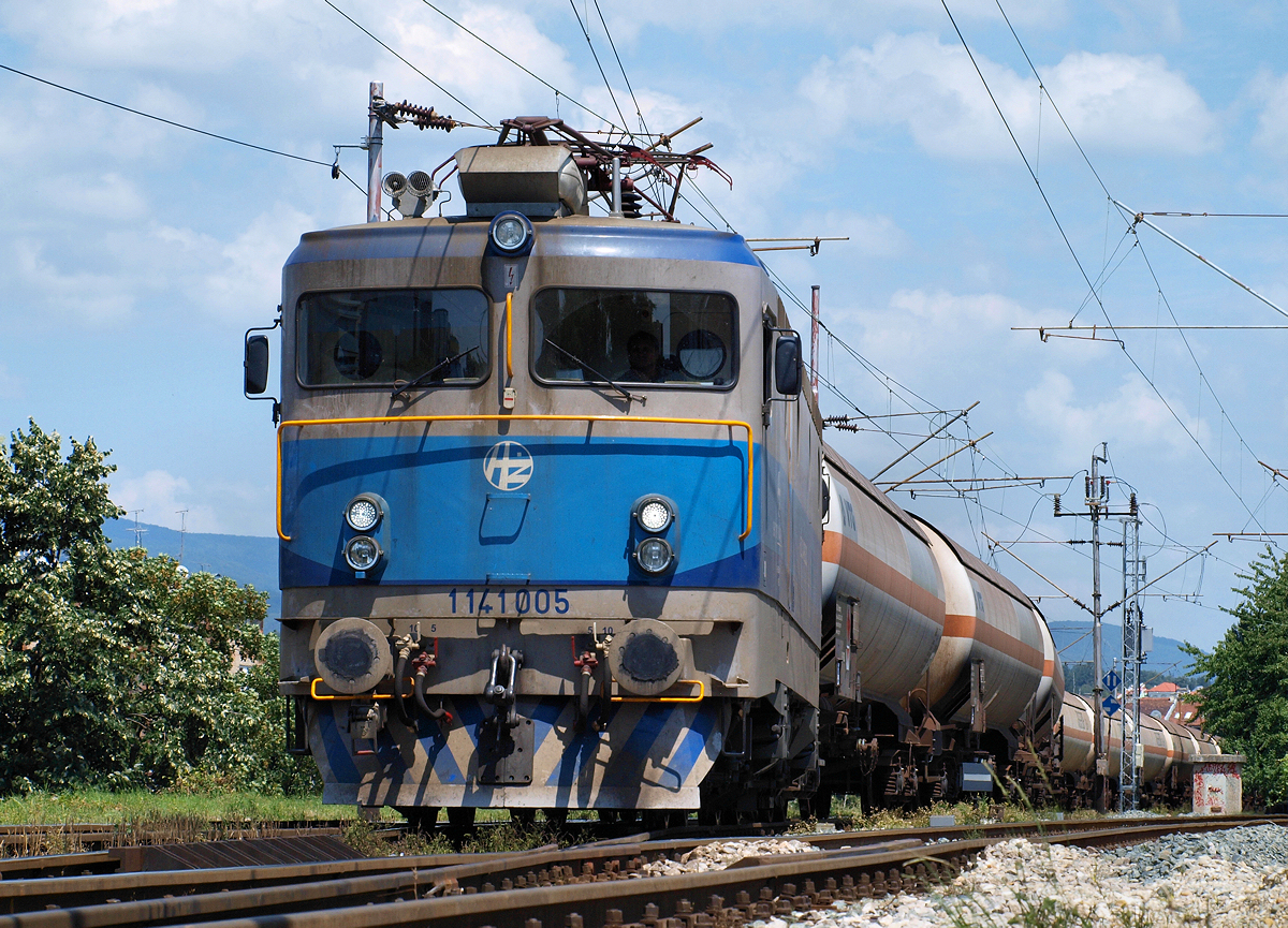 1141 005 passiert die Abzweigung Zagreb-Tresnjevka mit einem Kesselzug in Richtung Zagreb Verschubbahnhof / 18.07.2013.