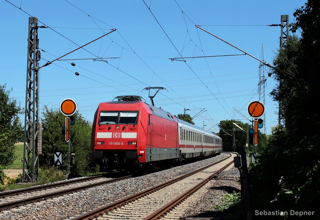 101 006 am 1.8.13 in Goldshöfe mit einem IC Nürnberg-Karlsruhe