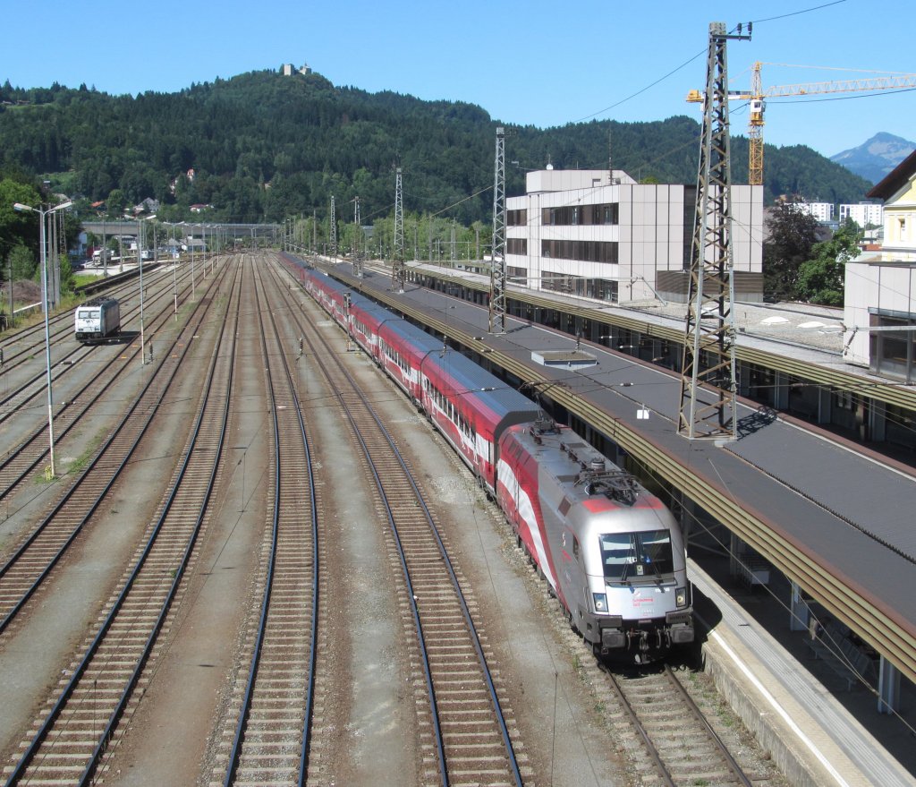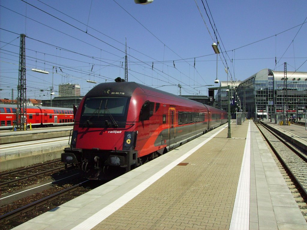 "Meine Damen und Herren an Gleis 11, es steht für Sie bereit RailJet 69 nach Wien Westbahnhof. Mit Halten in Rosenheim, Salzburg, Linz und St. Pölten. Planmäßige Abfahrtszeit 15.27 Uhr! Bitte Beachten Sie, dass dieser Zug heute außerplanmäßig auch in Rosenheim hält!