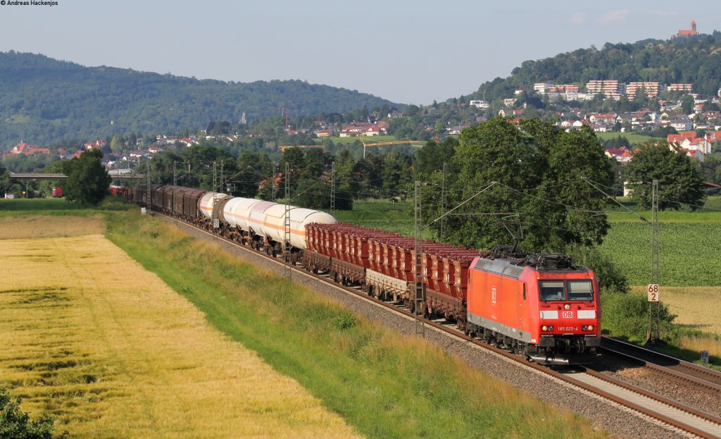 Hier 185 585-7 mit einem Kesselwagenzug, bei der Durchfahrt am 1.7.2013 durch Berlin Schönefeld Flughafen, in Richtung Berlin Grünauer Kreuz.