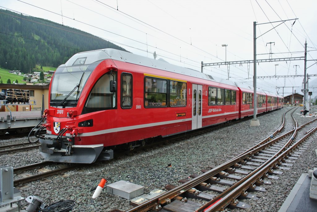 ABe 4/16 Nr. 3101 abgestellt in Davos Platz. Der Zug wird auf der Linie Davos Platz-Filisur eingesetzt, 08.08.2013.