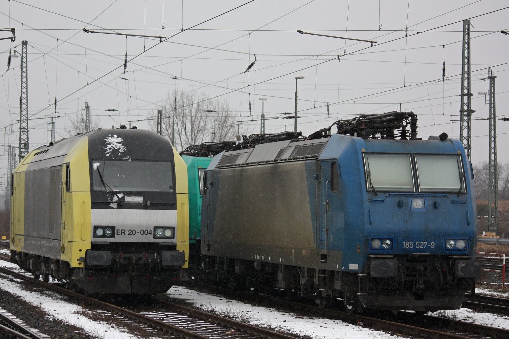 Crossrail 185 527 und ER 20-004 am 24.2.13 abgestellt in Krefeld Hbf.