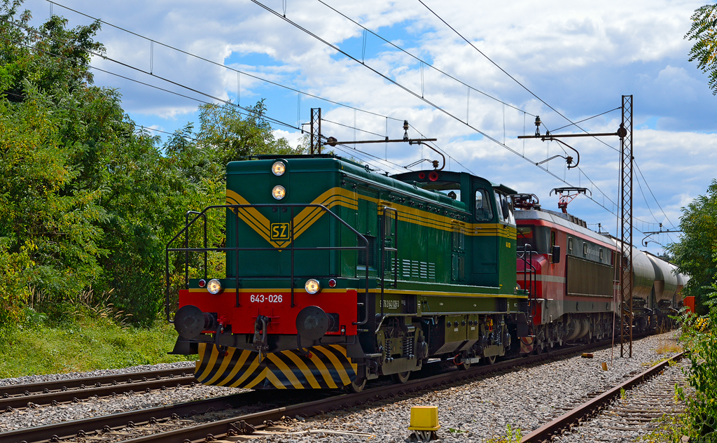 S´ 643-026+363-? ziehen Güterzug durch Maribor-Tabor Richtung Norden. /31.7.2013