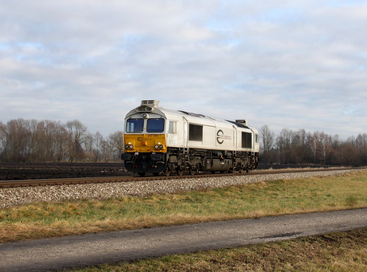 2068 052 mit dem an diesem Tag sehr kurzen Verschubgüterzug bei Langenwang am 9.12.2013.
