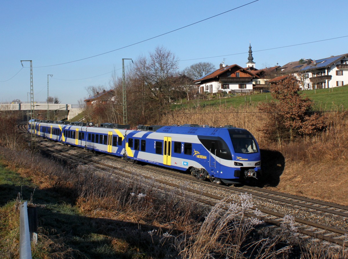 Auf der Mangfallbahn Rosenheim-Holzkirchen verkhren nun Desiros der Vogtlandbahn als Ersatz für die zu spät gelieferten FLIRTs, frontal als Meridian gekennzeichnet.
