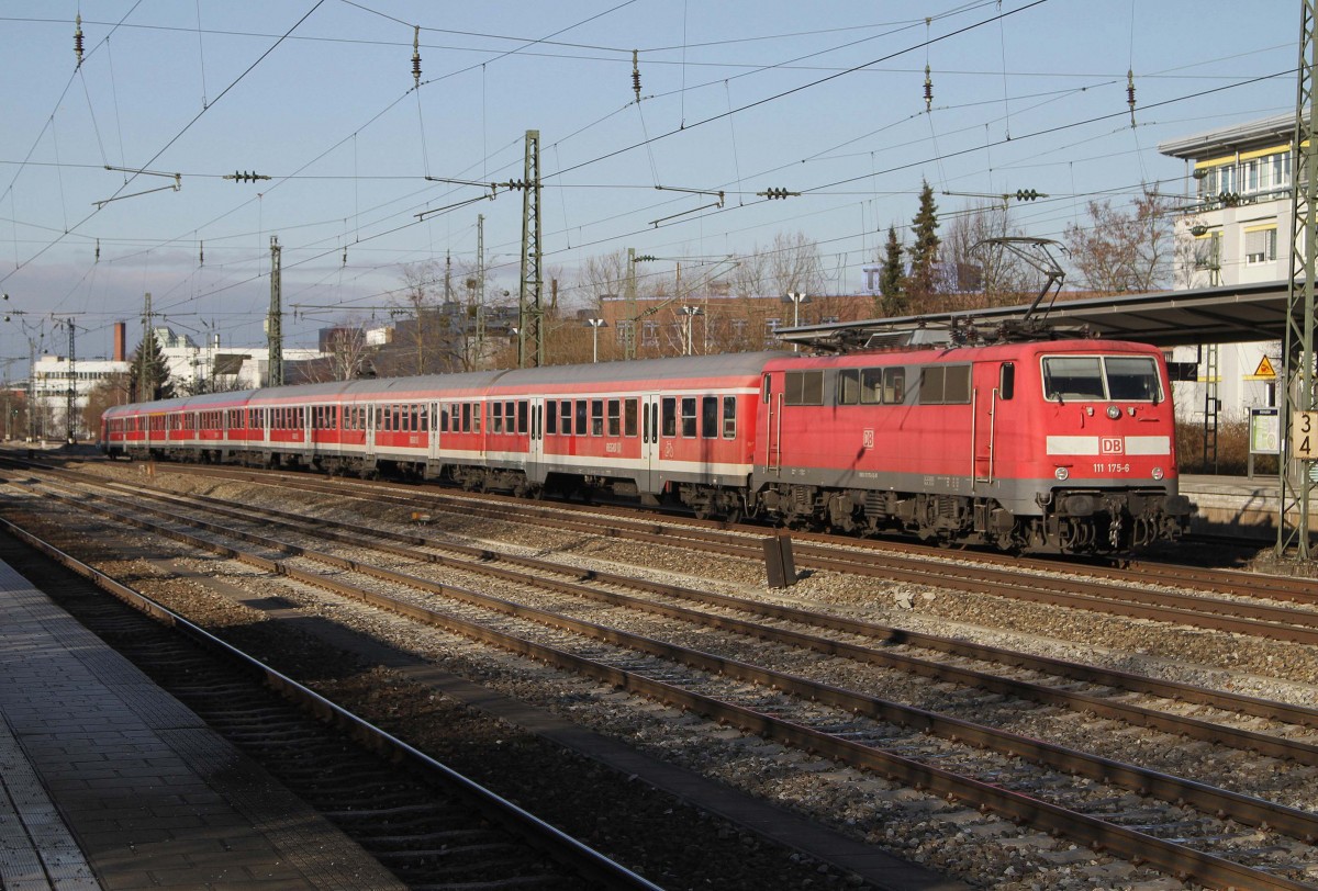 Die 111 175-6 schiebt den RE von Salzburg Richtung Hbf, aufgenommen am Heimeranplatz am 14.12.2013
