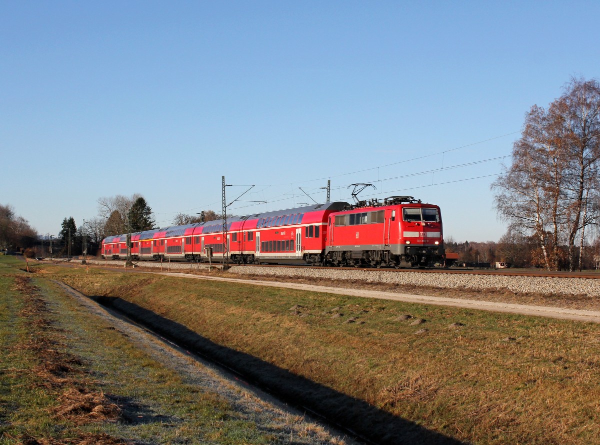 Die 111 180 mit einem RE nach Salzburg am 14.12.2013 unterwegs bei Übersee.