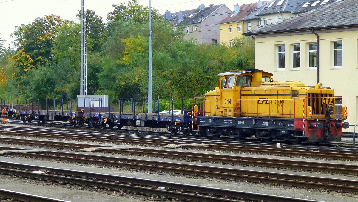 Bahnhof Petingen (Luxemburg), CFL cargo 314 (MAK 800170, Baujahr: 1970, 72 Tonnen, 55 km/h). 09.10.2013
