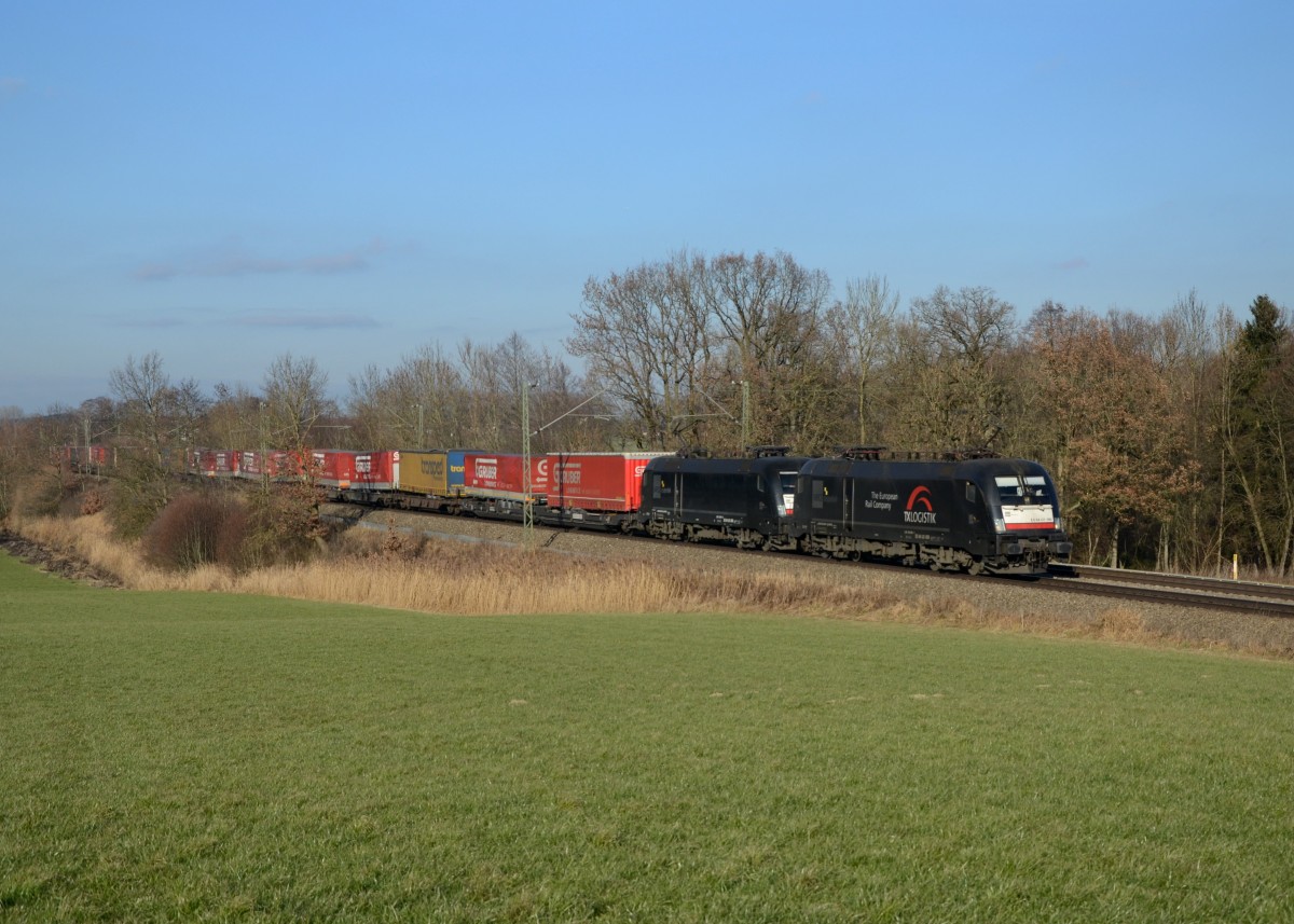 182 599 + 182 598 mit DGS 43101 nach Verona am 14.12.2013 bei Hilperting.