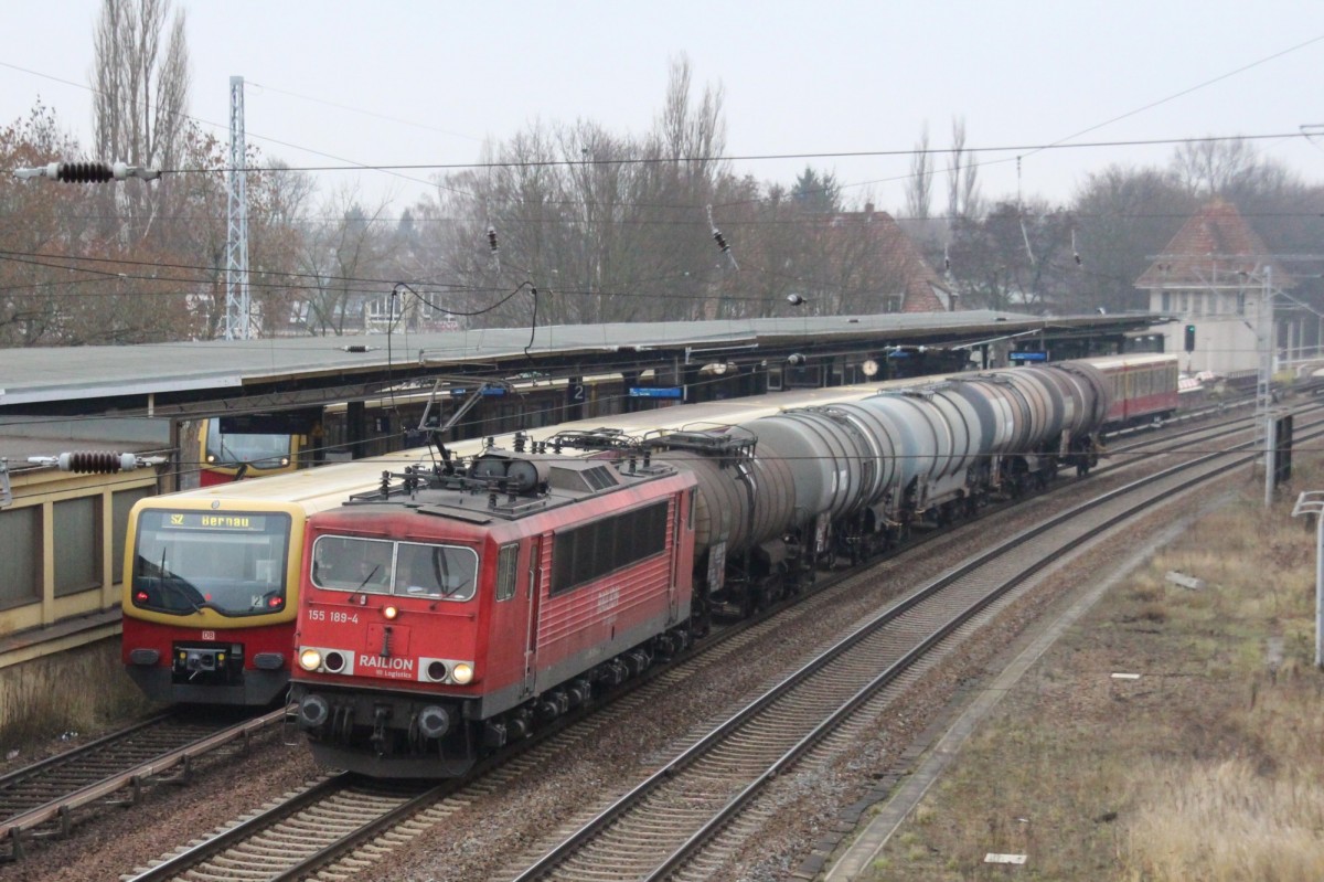 Anfang Dez. 2013 Berin-Buch 155 198 leicht unterfordert mit Kesselzügchen (Überführung) südwärts