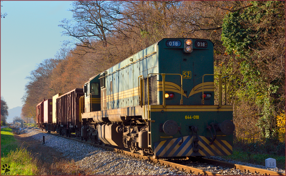 SŽ 644-018 zieht Güterzug durch Maribor-Studenci Richtung Tezno Verschiebebahnhof. /28.11.2013