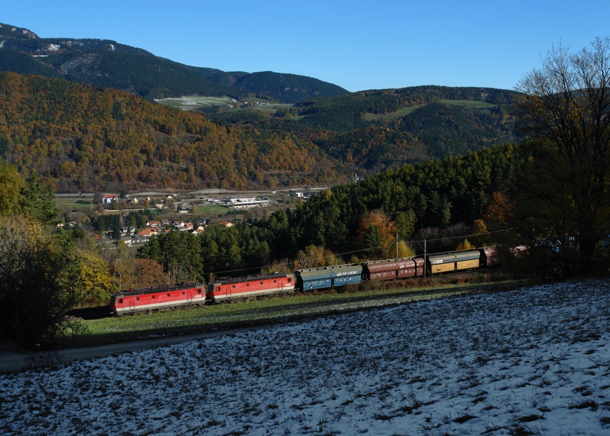1144 218 + 1144 xxx mit einem PKP-Kohlezug am 31.10.2012 bei Eichberg.