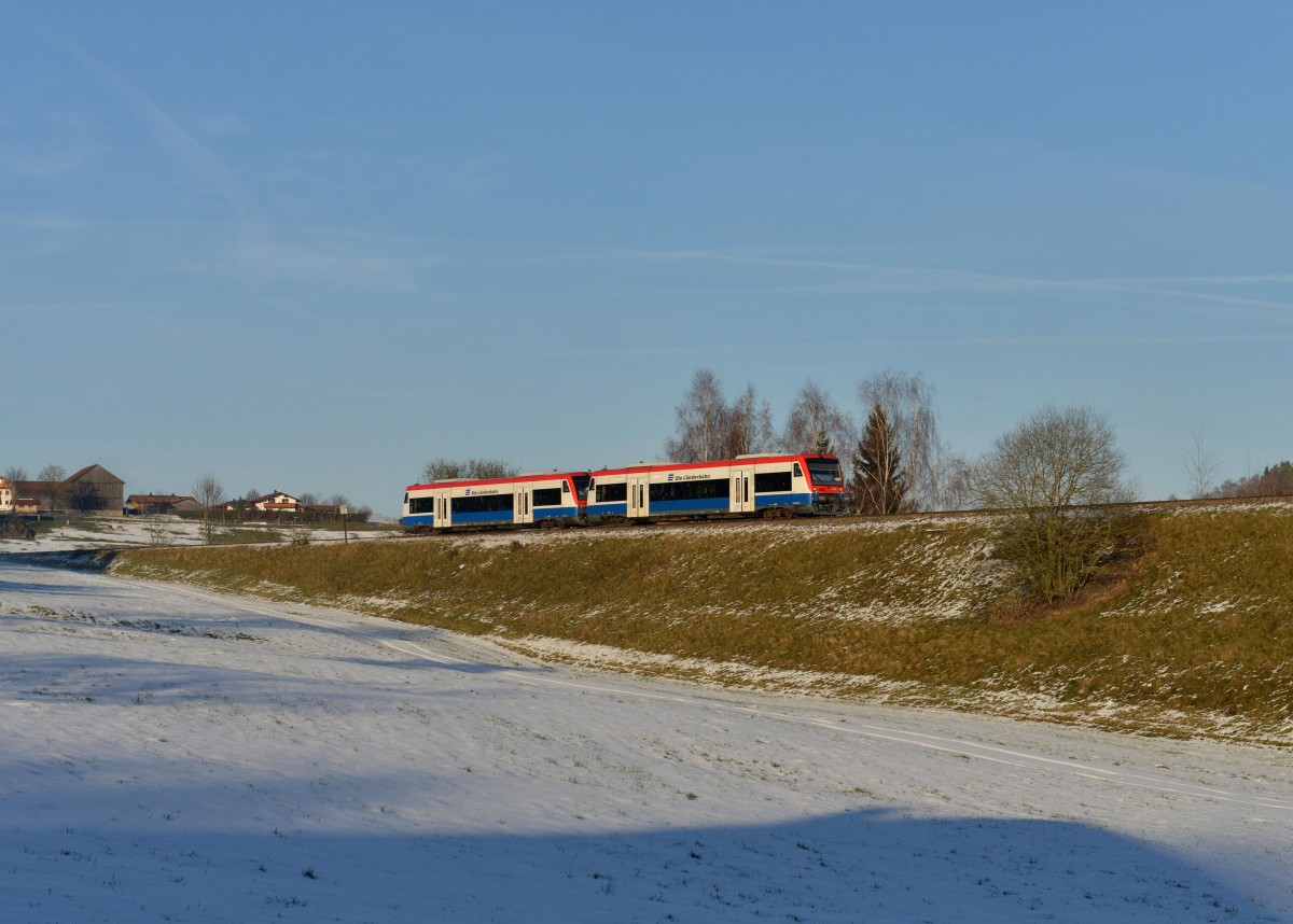650 563 (VT 63) + 650 565 (VT 65) als RB nach Spicak am 02.12.2013 bei Triefenried.