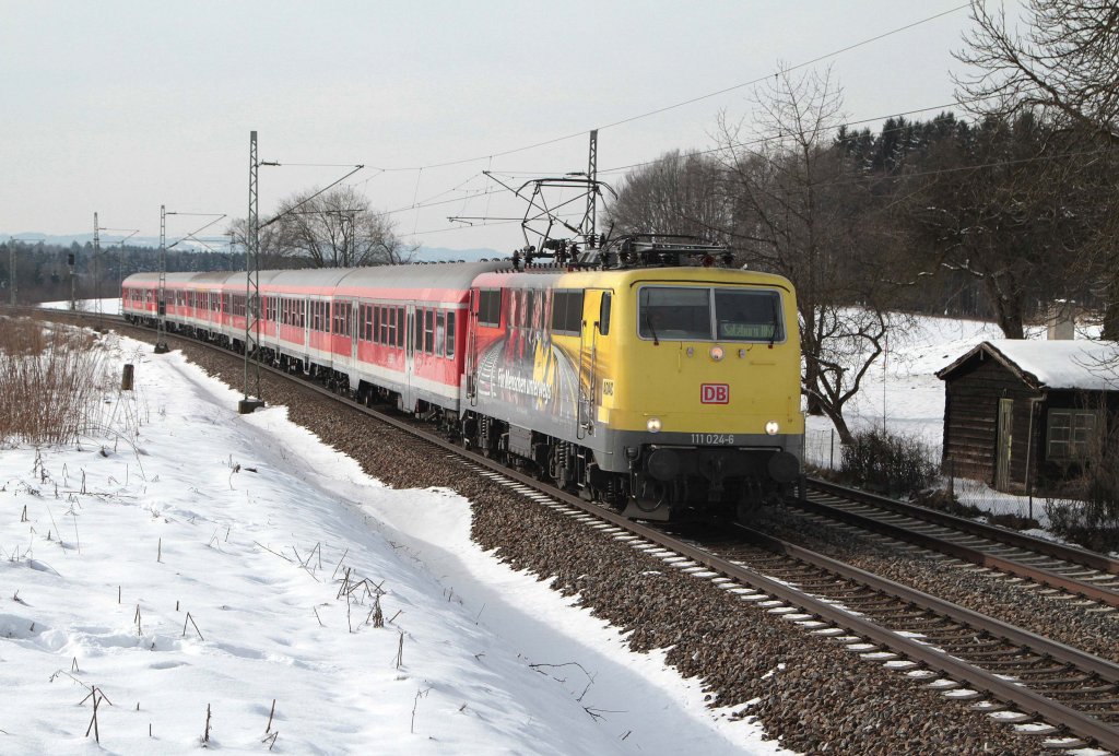 111 024 mit RE von München nach Salzburg bei Übersee am 11.02.2013