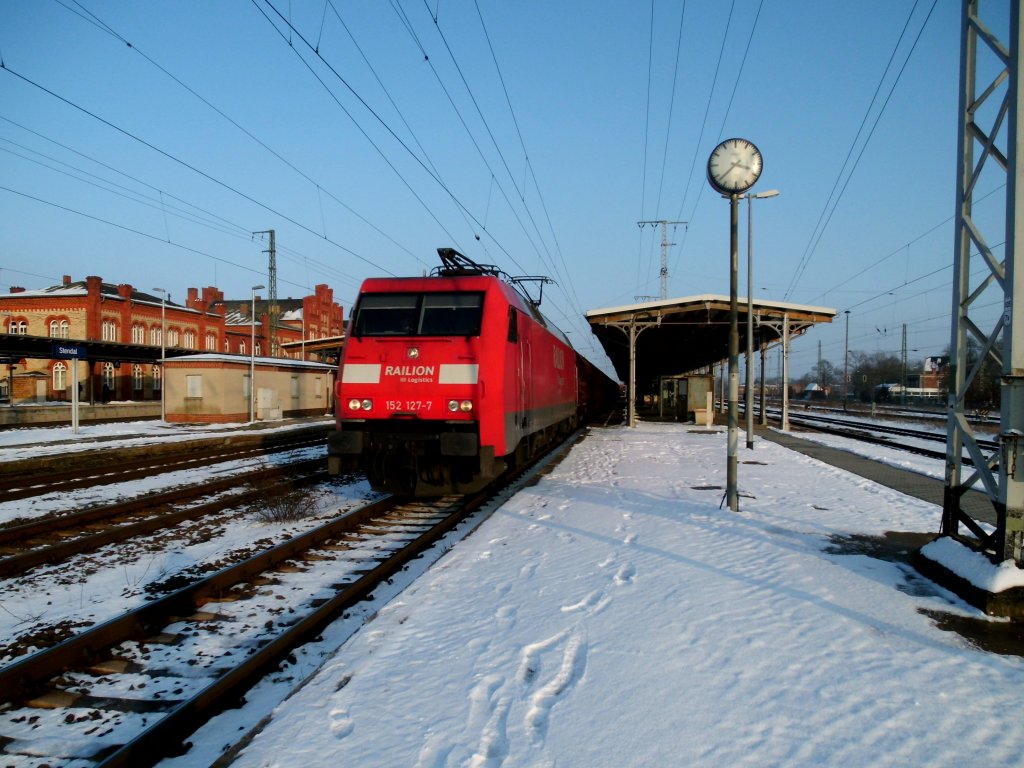 Am 10.02.2013 kam die 152 127 mit einem Getreidezug durch Stendal.