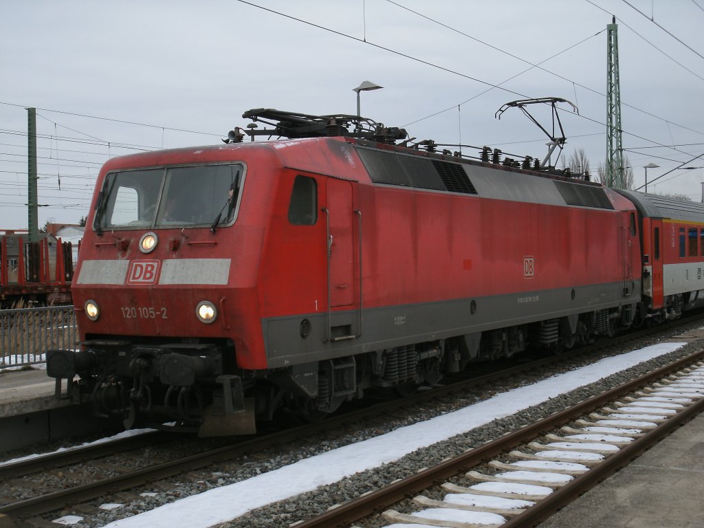 Lokporträt von 120 105.Aufgenommen am 23.Dezember 2012 beim Halt in Bergen/Rügen.