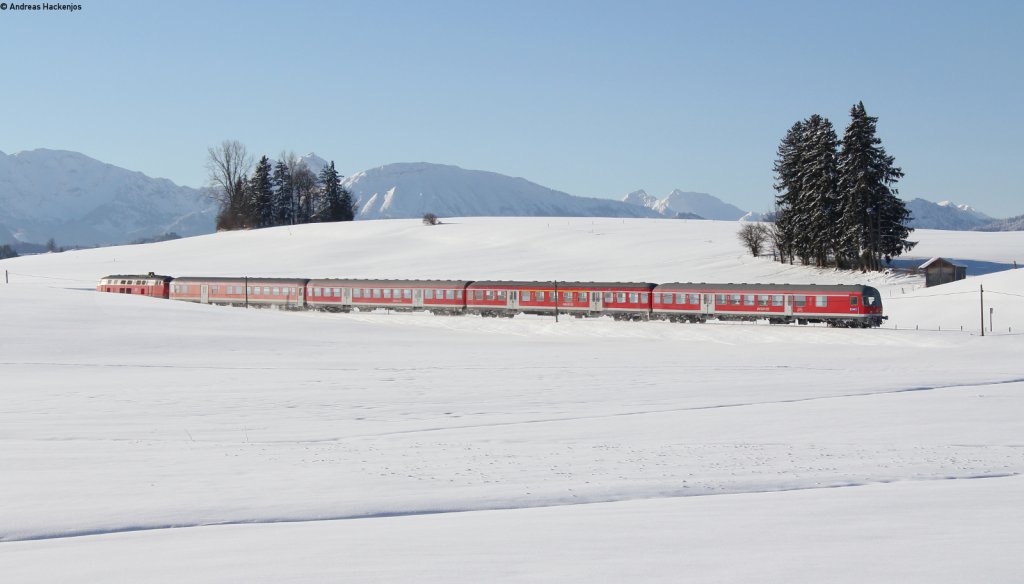 218 491-9 mit dem RE 57518 (München Hbf-Füssen) bei Lengenwang 10.2.13