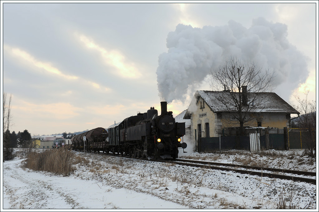 93.1420 mit ihrem SGAG 14500 von Korneuburg nach Ernstbrunn am 11.2.2013 am bei der Ausfahrt aus Karnabrunn.