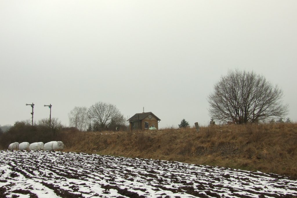 Schrankenwärterhäuschen am westlichen Ausgang des Haltepunktes Dessau-Alten.
