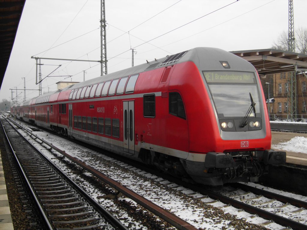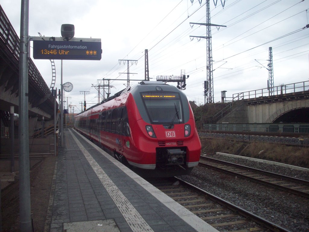 Hier eine RB14 (RB18570) von Senftenberg nach Berlin Schönefeld Flughafen, bei der Einfahrt am 6.2.2013 in Berlin Schönefeld Flughafen.