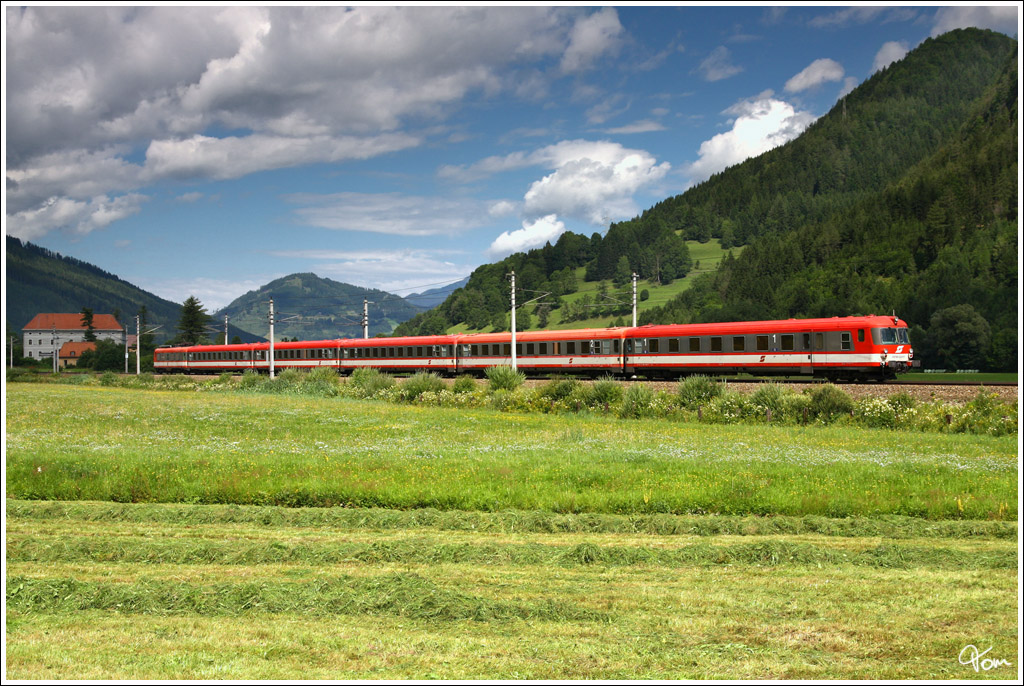 E-Triebwagen 4010 mit Steuerwagen 6010 024 voran fährt mit IC 513 "Ferdinand Raimund" von Selzthal nach Graz.
