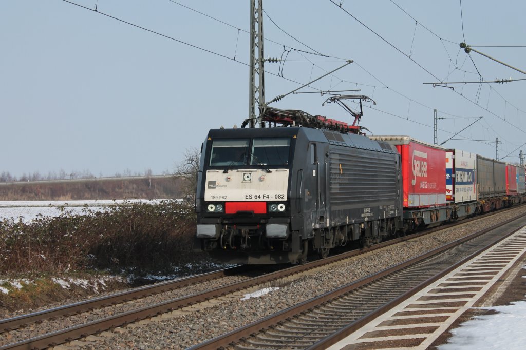 ÖBB 1016 037-2 hatte am 10.02.13 die Aufgabe LGAG 48401 (Voest Alpine Linz - Koper Luka) bis Jesenice zu ziehen, die Aufnahme entstand bei Hallwang-Elixhausen.
