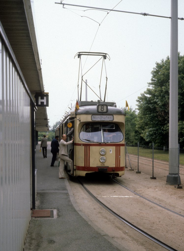 Hannover ÜSTRA SL 8 (T4 506) Mittelfeld, Messegelände am 26. Juni 1981.